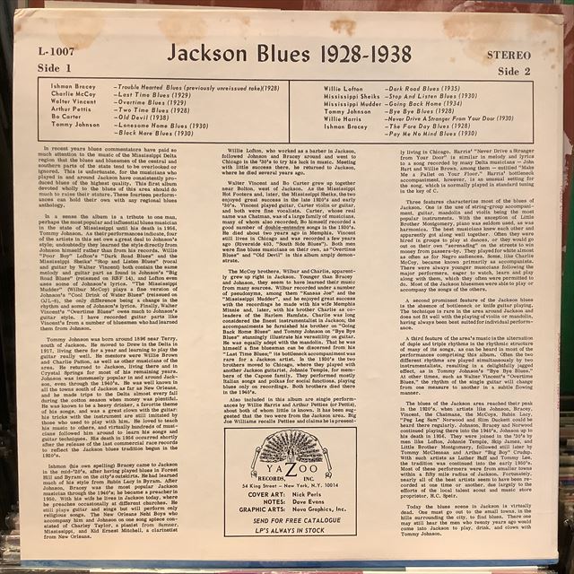 VA / Jackson Blues 1928-1938 [US Yazoo L1007]